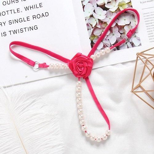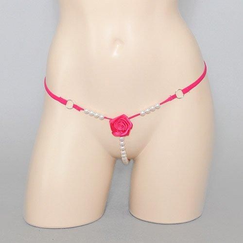 バラのモチーフがついたパール付きのTバックショーツ(T-BACK・SHORTS) ピンク