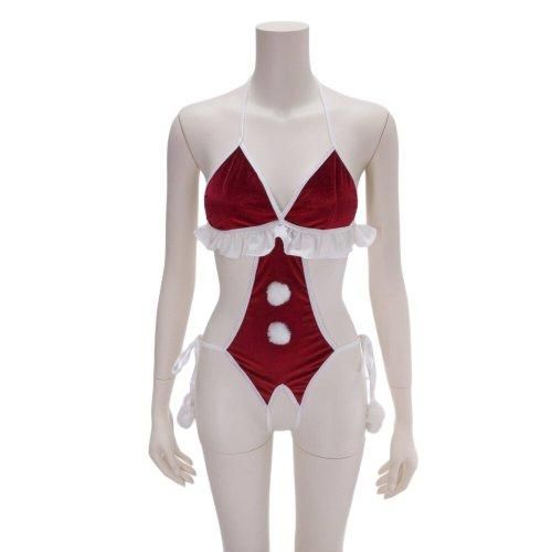 ハイレグオープンクロッチのサンタガール風コスプレ(COSPLAY)