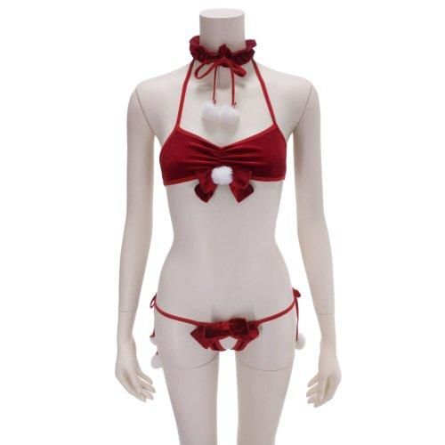 極小面積のブラショーツセットサンタガール風コスプレ(COSPLAY)