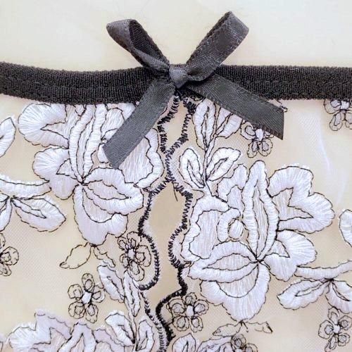大胆デザインに引き寄せられるシースルーブラ・ショーツセット(BRA・SHORTS SET)。チュールに花柄刺しゅうがエレガントながら、オープンクロッチに露わになったバストトップが堪らなくセクシー。下着としての機能を果たさず、ただただパートナーを深〜く濃厚時間に惑わせるためのデザイン☆ブラのバックスタイルはリボン結びで調節可能で、伸縮性があり動きやすいのも嬉しいポイント。