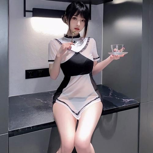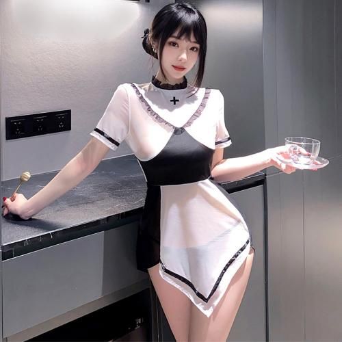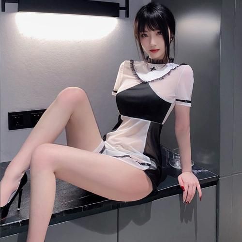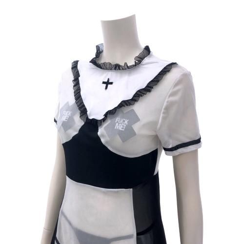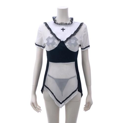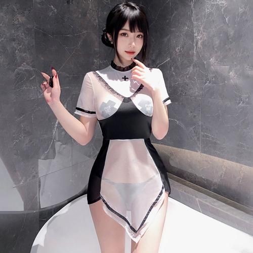 さり気ないメッセージでしっかり自己主張するシスター風コスプレ(COSPLAY)。シスターの清純なイメージとは大きくかけ離れたシースルーな大胆コス。透けたバスト部分には二プレスに書かれたメッセージが…控えめの中に隠れた彼女の大胆さを自分だけが知る優越感に浸りながら、首元のリボンをゆっくりと解き濃密な時間を。