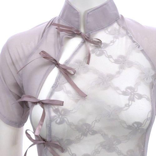 シースルーから覗くボディが興奮を加速させるチャイナ服風ベビードール(BABYDOLL)。素材が異なったレースとチュール2つのシースルーがボディにメリハリを与えてくれる。リボンで結ばれた生地の間から素肌が透け、深いスリットから覗く太ももが更に興奮度を上げてくれます♪背中から腰に掛けて肌が露出し、腰で結んだリボンを解くゾクゾク感が堪らないベビードールです。