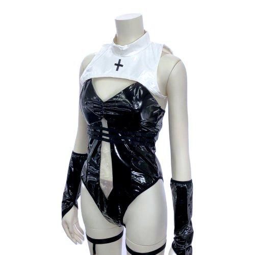体に食い込むボンテージが興奮度を加速させるシスター風コスプレ(COSPLAY)。パット内臓のボンテージが素肌にピッタリフィットし、ボディラインを強調。胸元から下腹部の透け感が縦のラインを作り、クロッチ部分はスナップボタンで開閉しやすく、太ももに食い込むガーターリングが更にセンシュアルで気分を上げてくれます♪