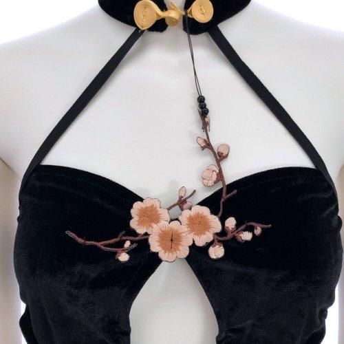 梅の花が胸元を彩るベロア素材のチャイナ服風コスプレ(COSPLAY)