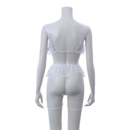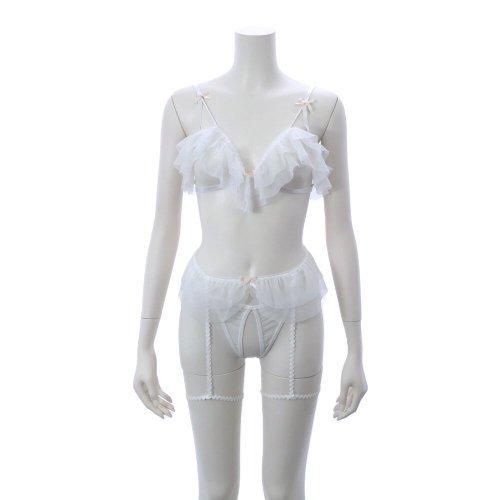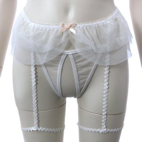 子ネコのように気まぐれなガーターランジェリー(GARTER LINGERIE)。2段のフリルと小さなリボンがあどけない子ネコのような愛らしさを感じつつ、オープンになったバストを囲むようにアンダーを持ち上げ、ショーツは大胆なオープンクロッチが思いっきりセクシー。ランジェリーを身に着けたまま気まぐれな彼女と濃密時間♪