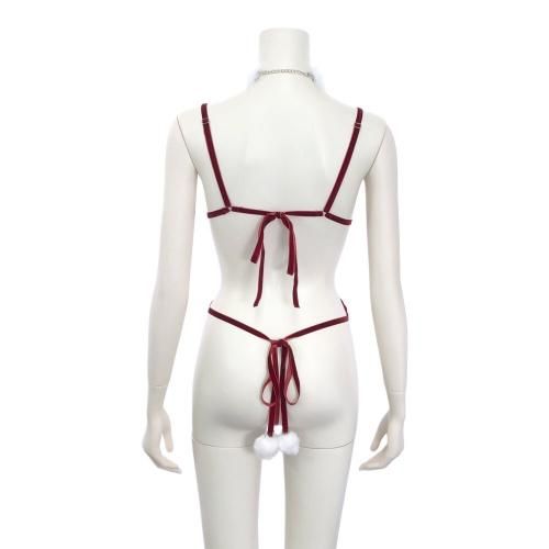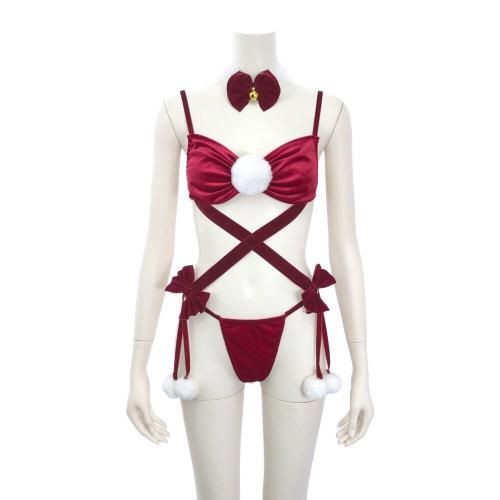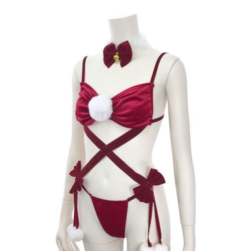 ポンポンが揺れストリングデザインがカラダを這うサンタガール風コスプレ(COSPLAY)