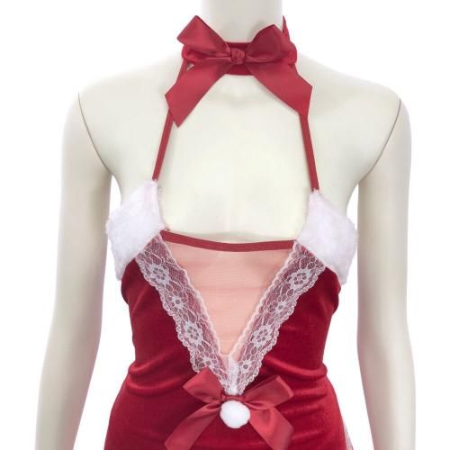 気まぐれバニーが聖夜に思いを馳せるサンタガール風コスプレ(COSPLAY)。胸元やサイドスリットにチュールを施し、さり気ない透け感がちょっぴりセクシー♪ネックやウエストのリボン、白いファーの縁取りがクリスマス気分を盛り上げ、ミニ丈の裾からはショーツが見えそうなギリギリラインでパートナーをドキドキさせます。セットのカチューシャを身に着ければ、魅力的なバニーガールサンタの出来上がり♪背中側には2列3段のブラホック付きで調整可能。