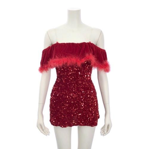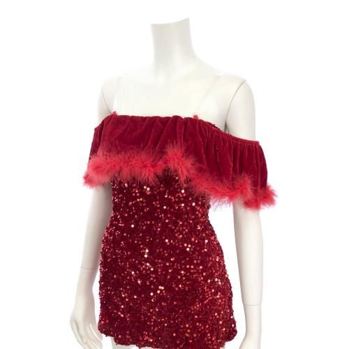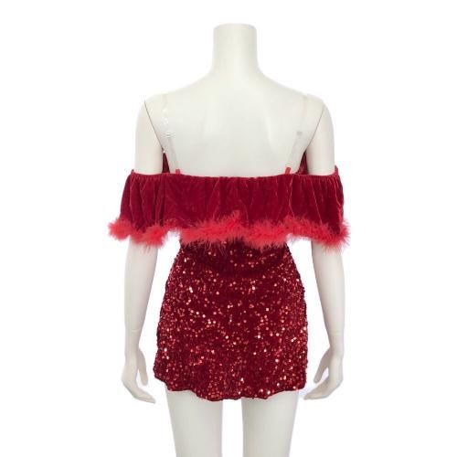 大胆サプライズで聖なる夜を盛り上げるサンタガール風コスプレ(COSPLAY)。タイトなラインがバストからヒップにかけて女性らしい曲線美をアピールし、ファーやスパンコールが聖なる夜を輝かせるマイクロミニワンピ。一見セクシーなワンピですが、オフショルのラバティンカラーをちらっとめくるとカットアウトされたバストが大胆お目見えのサプライズ♪今宵は特別な熱い時間を過ごせそう…。