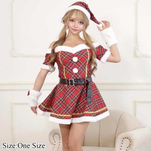 オフショルデザインタータンチェック柄サンタガール風コスプレ(COSPLAY)