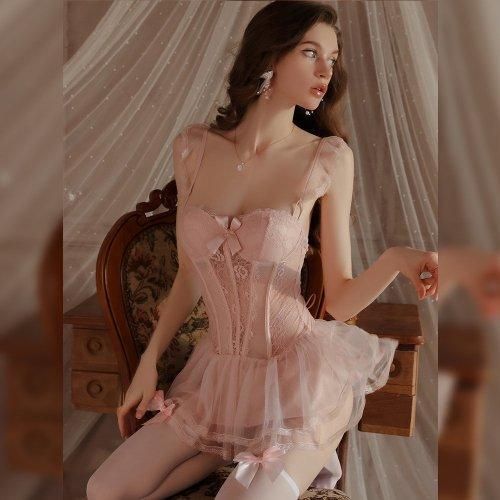 イノセントの中に隠したギャップに心揺さぶるガーターランジェリー(GARTER LINGERIE)。ふんわりとしたチュールがまるでバレリーナのように軽やかなガーターランジェリー。バストからヒップにかけて女性らしいボディラインを強調します。ブラはパット内蔵で美しいバストラインをキープし、フロントのワイヤーはお腹をカバーしながらほっそり華奢見え☆ショーツは可憐な雰囲気とはギャップがある大胆なオープンクロッチで、パートナーを惑わせる。ホックは2列3段で調整可能です。