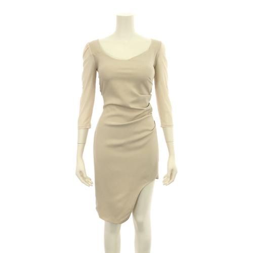 サイドギャザーラウンドスリットワンピース(キャバドレス・CABARETDRESS)。デコルテライン広めのスクエアネックが小顔効果があり、透け感と伸縮性があるチュールスリーブが女性らしい印象のアシンメトリーデザイン。サイドのギャザーがボディラインをカバーしながらも全体を引き締め、ラウンドスリットから覗く太ももがセクシーな抜け感のあるワンピです♪無地のシンプルなベージュカラーが合わせる小物やバックを惹き立たせるので、オシャレな幅も広がります。