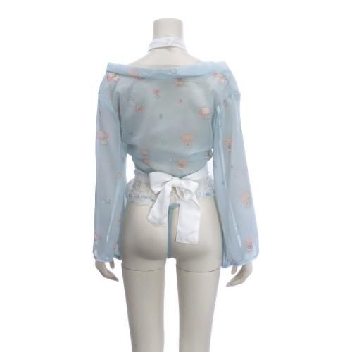 セット内容トップス、Tバックショーツ、エプロン、ニーハイストッキング 4点
