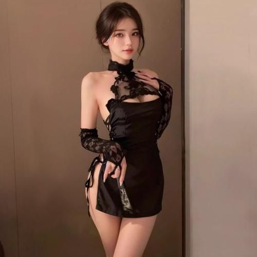 サイドレースアップで本気を魅せるチャイナ服風コスプレ(COSPLAY)。ジャガード織りの光沢と胸元のレースが美しいミニ丈チャイナ服。チャイナボタンを施したミステリアスなデザインながら、大胆オープンバストやバストからヒップまで続くサイドレースアップに彼女の本気を感じる。アームカバーを身に着ければさらにエレガントな雰囲気に。どの角度から見てもセクシー☆