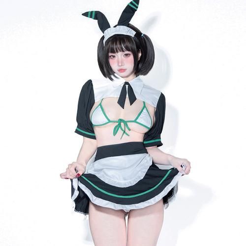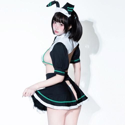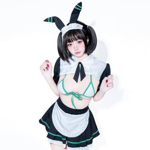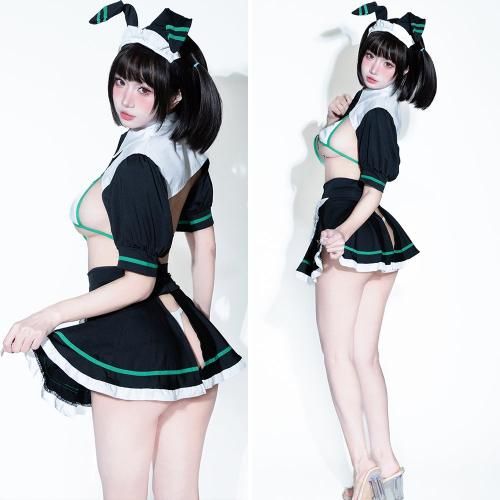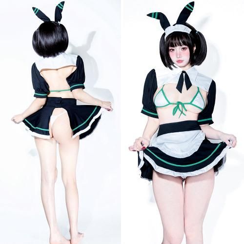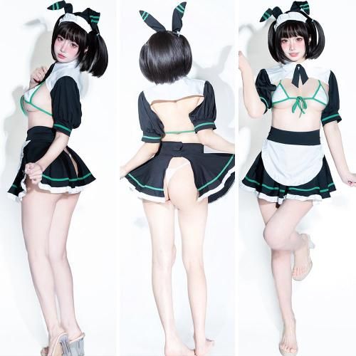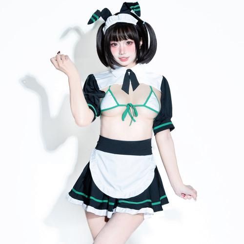 貴方だけに特別メニューをご提供ウェイトレス風セクシーコスプレ(SEXYCOSPLAY)。ふんわりパフスリーブに揺れるフリルスカートがフェミニンながら、露出度も高くしっかりエロティック。本来隠された箇所を露出した逆バニーデザインのウェイトレスが貴方に仕える♪華奢なストリングで支えられた三角ブラは、結んだリボンを解くワクワクが堪らない。マジックテープで着脱簡単なスカートはヒップが露わなバックスタイルで、どこから見ても最高なアングルを楽しめそうです。