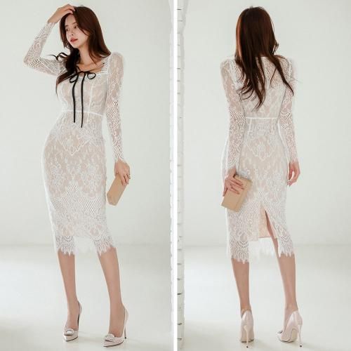 【只今セール中】デコルテリボンペンシルラインレースワンピース(キャバドレス・CABARETDRESS)