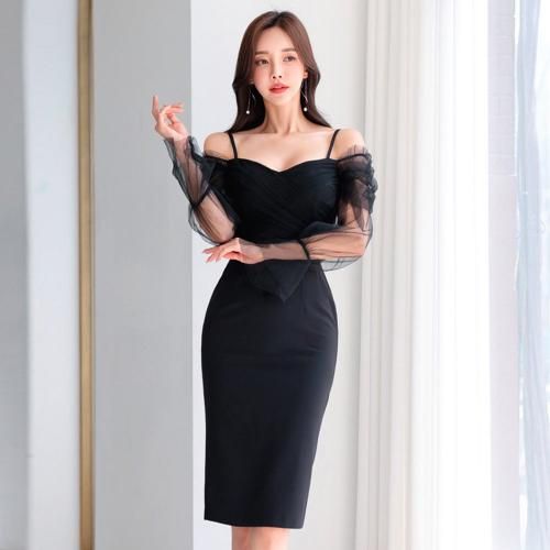 オフショルボリュームスリーブワンピース(キャバドレス・CABARETDRESS)。バストトップと袖に施されたチュールのボリュームがエレガントなオフショルワンピ。デコルテを大きく肌魅せすることで女性らしいシルエットが生まれ、ミディアム丈が大人の余裕を感じます。ナイトワークやパーティなど、様々なシーンで着用いただけます。