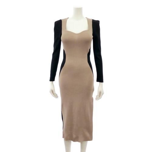 タグ:#ミディアムドレス #タイト #ニットワンピ #長袖 #ブラック系 #ベージュ系