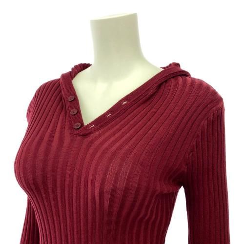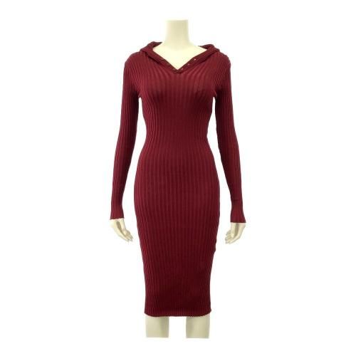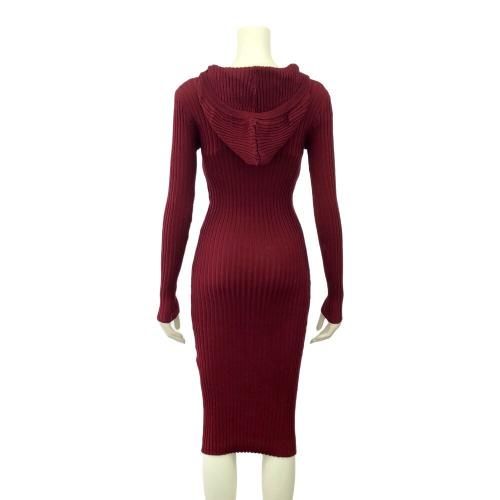 フロントボタンフード付きニットワンピース(キャバドレス・CABARETDRESS)。柔らかく伸縮性に優れた太目リブニットが女性らしい曲線を際立たせるニットワンピ。ワインレッドの落ち着いた色合いが目を惹き、フードとフロントボタンがカジュアル感を高めるので、スニーカーと合わせスポーティな着こなしもおすすめです♪