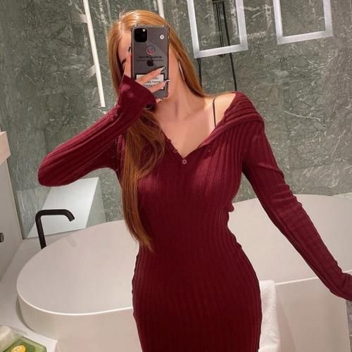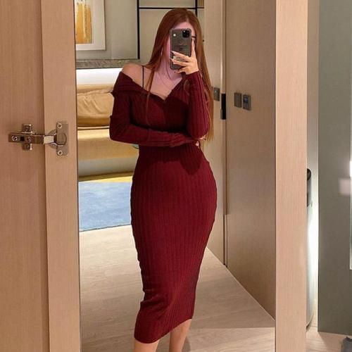 タグ:#ミディアムドレス #ニットワンピ #レッド系
