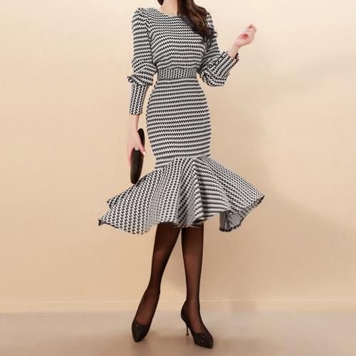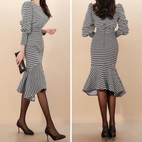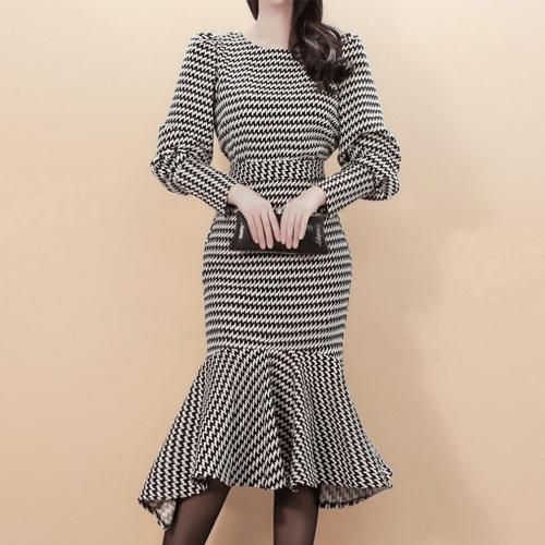 タグ:#ミディアムドレス #セットアップ/ツーピース #フィッシュテール #マーメイドライン #ブラック系 #チェック柄