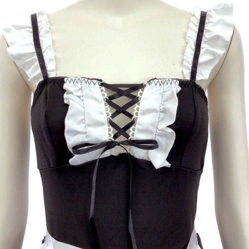 貴方だけに従順するフェミニンなメイド風コスプレ(COSPLAY)。スクエアネックが華奢なデコルテを強調し胸元のレースアップから素肌がチラ見え、フリルをたっぷり施しボリュームあるスカートがふわりと揺れるフェミニンムード漂うメイドコスプレです。今宵は貴方のために時間をかけてたっぷり…♪