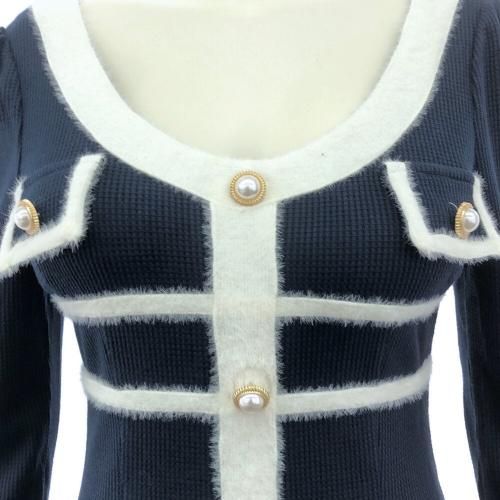 Vネックシャギーラインミニワンピース(キャバドレス・CABARETDRESS)。Vネックがお顔周りをシャープに魅せ、ネイビーにふんわりシャギーの白ラインがアクセントになりすっきり細見えが嬉しいポイント。ゴールドパールのボタンがクラシカルに輝き、エレガントさをプラス。ワッフル素材が軽やかで着心地良く、ロングシーズン活躍する七分袖が程良い抜け感です♪