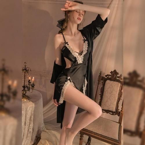 リュクス感がレディとしての魅力を上げるベビードール(BABYDOLL)。ベージュのレースがクラシカルで、サテンの艶と滑らかなタッチが陰影を生み出し神秘的で官能的。サイドウエストのカットアウトがスタイリッシュに仕上げ、Vネックの胸元はクロスストリングがバストを引き寄せ、腰まで入ったスリットが美脚に魅せてくれます。露出と遮蔽のバランスが美しいデザインで、恋人との特別な時間はもちろん、ルームウェアとしても艶っぽいベビードールです♪