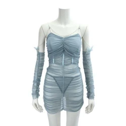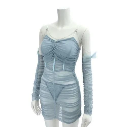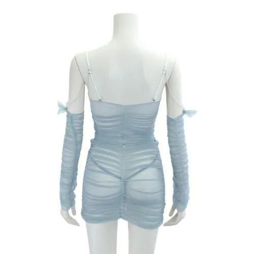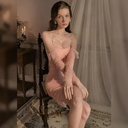 ラグジュアリーとフェミニンが交差するタイトギャザーベビードール(BABYDOLL)。胸パット付きでバストのボリュームをキープしつつ、タイトなボディラインが魅力的。全体的にギャザーを施し、更に引き締め効果と、素肌の陰影が美しいコントラストを生み出します。バスト下のサテンパイピングがウエストをすっきり魅せ、パールビーズのアクセントがラグジュアリー感漂います。また、リボン付きのアームカバーがセクシーの中にもフェミニンを感じるデザインです♪