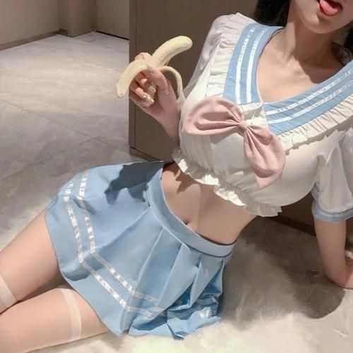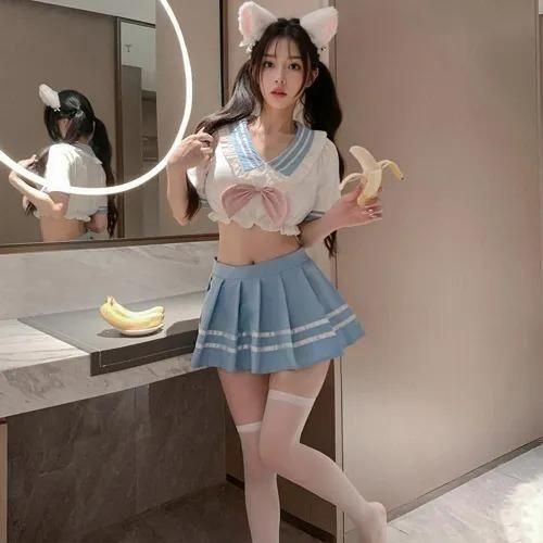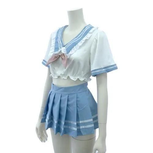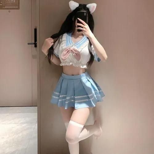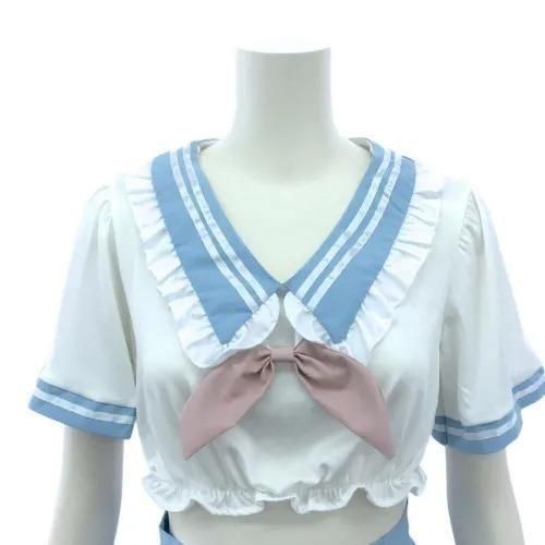 甘酸っぱくてキュートな猫耳セーラー服コスプレ(COSPLAY) 。純白に淡いブルーが爽やかで、襟にフリルを施した幼さの残るキュートなセーラーコスプレ。ショートトップスのギャザーウエストがバストを強調し、可愛いだけではないセクシーな魅力を放ちます。プリーツミニスカートは着脱しやすいマジックテープで受け入れ態勢バッチリ♪そして鈴付きのふわふわねこ耳カチューシャを身に着ければ、気まぐれ猫ちゃんに可愛く変身できちゃう♪