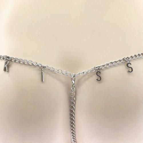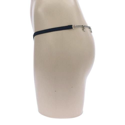 KISSチャーム付きTバック・ショーツ(T-BACK・SHORTS)。KISSの文字チャームが腰で揺れるチェーンのTストリングが、柔らかな素肌に這うクールなショーツ。フロントはシンプルで、不意を突かれるバックデザインが魅力的です。
