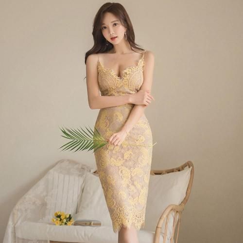 【クリスマスセール!全品10%OFF】タイトラインイエローキャミワンピース(キャバドレス・CABARETDRESS)