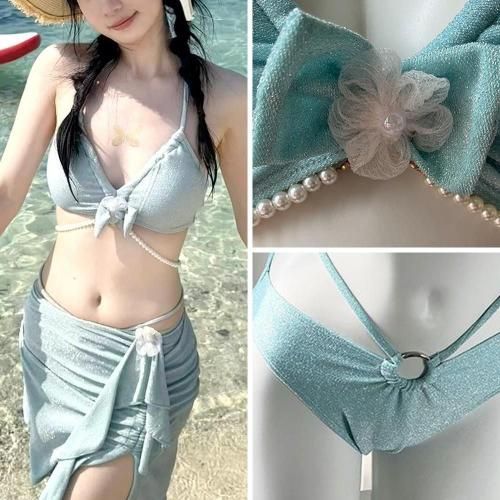 パールアクセントシャイニービキニ3点セット(水着・ビーチウェア)