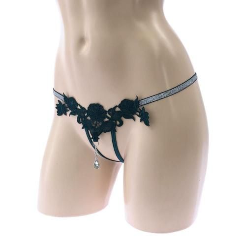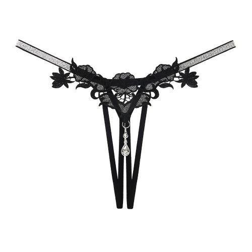 チャームが揺れるオープンクロッチエレガントTバック・ショーツ(T-BACK・SHORTS)。エレガンスさが際立つフロントレースにティアドロップチャームが動くたびに揺れ、シルバーのウエストストリングが輝き放つデザイン。フロントからヒップにかけて大胆なオープンクロッチが、ショーツを履いたままパートナーを翻弄します♪