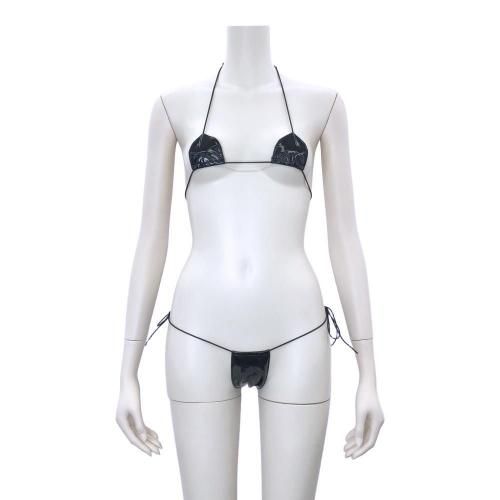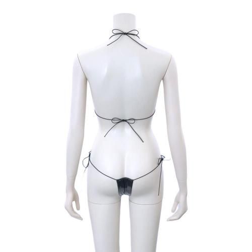 興奮が押し寄せる見えそうで見えない最低限をカバーしたマイクロビキニスイムウェア(SWIMWEAR)。トップのみを隠した極小のマイクロブラと、同じく極小のショーツのセット。最低限を隠し、見えそうで見えないギリギリ感が興奮度を煽ります。フェイクレザーの光沢が妖艶なムードを放ち、華奢なゴムが柔らかな肌に食い込む肉感的なデザインはパートナーの脳裏にしっかり刻まれそう♪質感は柔らかなフェイクレザーを使用しているので肌に優しくなじみます。