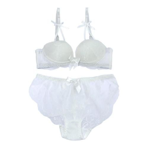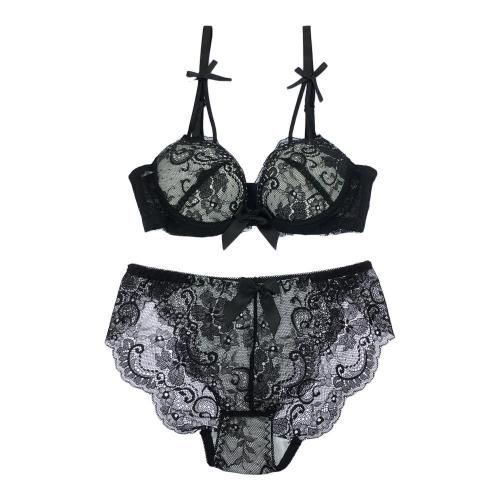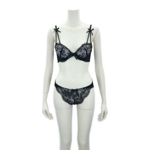 一枚は持っておきたい定番カラーブラ・ショーツセット(ブラセット)。セクシーなシアーレースに、リボンのアクセントが乙女心くすぐる定番カラーのブラセット。前中央が低めで、横は柔らかな脇高サイドボーンがお肉を逃がしにくいL字ワイヤーを使用。そしてモールドカップ内蔵で、圧迫感が少なく痛くなりにくいのに自然な美盛りが叶います。ショーツは人気のバックレースショーツで、アウターに響きにくくヒップを柔らかく包み込みます。