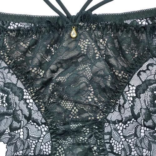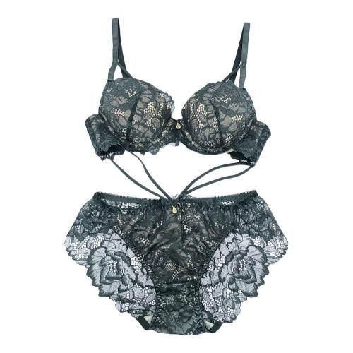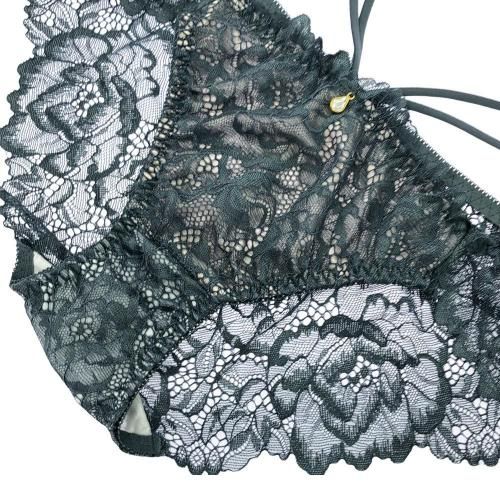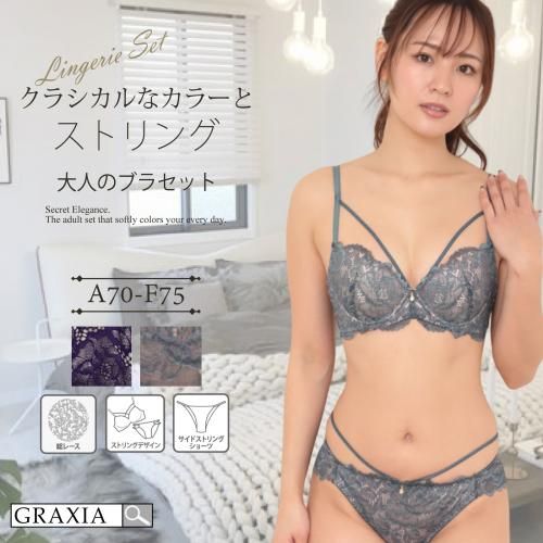 ストリングデザインが美しいボディを演出するブラ・ショーツセット(ブラセット)。クラシカルなカラーに、ストリングデザインが肌をシャープに引き締める。ワイヤーはお肉を中心に集めて自然と丸みのあるバストを形成するU字ワイヤーを使用し、自信に溢れるボディラインに。ショーツは腰周りのストリングがアクセントになり、人気の高いバックレースが大人の色気漂うデザインです。
