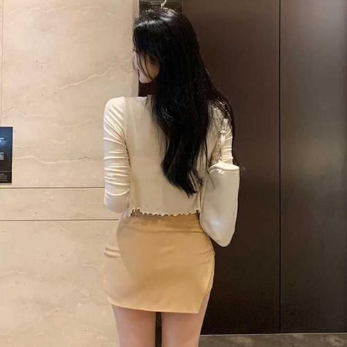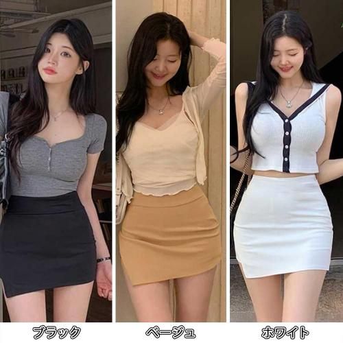 サイドスリットインパン付きタイトミニスカート(SKIRT)。伸縮性のあるタイトなシルエットが女性らしいラインを強調したミニスカートはインパン一体なので、ミニ丈ながら下着を気にすることなくサイドスリットがよりアクティブに伸縮性のあるタイトデザイン。クロップド丈でヘルシーな着こなしや、ざっくりオーバーサイズトップスにスニーカーでカジュアルダウンなど、ロングシーズンコーディネートが楽しめるアイテムです♪