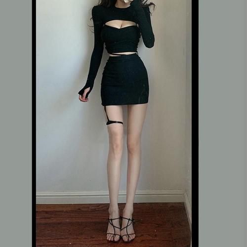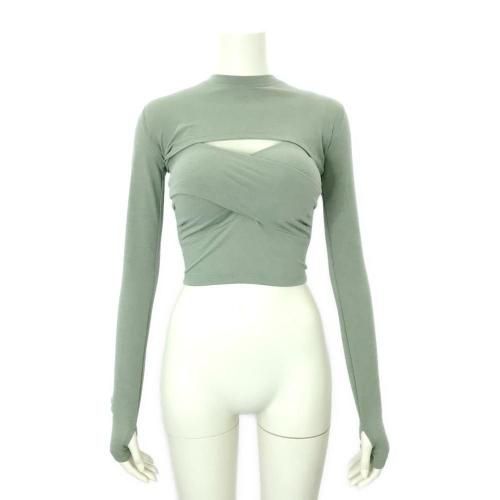 ロングスリーブトップス×フロントクロスキャミアンサンブルトップス(TOPS)。トップスとキャミソールの間から胸元が見えるセクシーなデザインで、フロントをクロスすることで谷間を強調。サムホール付きロングスリーブのクロップドトップスに、同じくクロップド丈のクロスキャミソールの裾からはウエストをヘルシーに肌魅せ。それぞれ別の着こなしも可能でアレンジの幅が広がり、シンプルで柔らかな着心地でロングシーズン着用いただけます♪