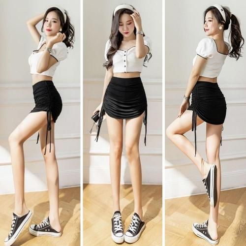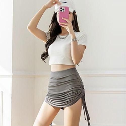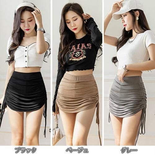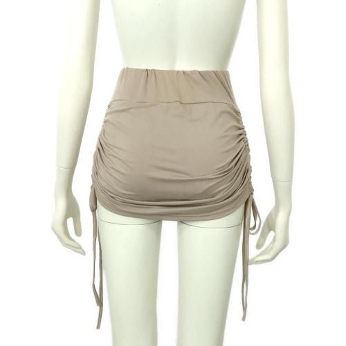 インパン付きサイドドロストタイトスカート(SKIRT)。伸縮性があるタイトなミニスカートは、カジュアル感のあるサイドドロストデザイン。ストリングを絞り引き上げることで、好みのスタイルに調整可能。また、インパン付きなので肌魅せしながらも、しっかりカバーしてくれるので安心♪思いきりアクティブに動いたり、野外でのリラックスタイムにもピッタリです。