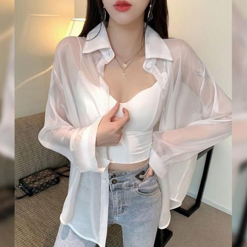 【クリスマスセール!全品10%OFF】バックスリットシアーシャツトップス(TOPS)