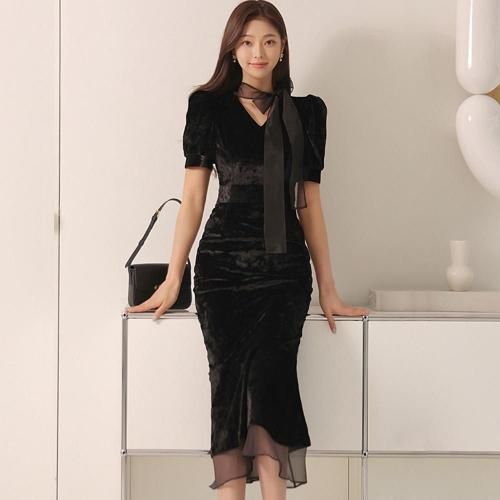 【クリスマスセール!全品10%OFF】ベロアマーメイドラインドレッシーワンピース(キャバドレス・CABARETDRESS)