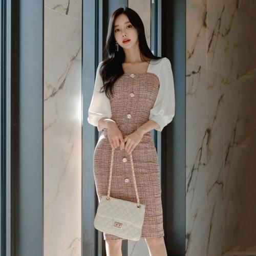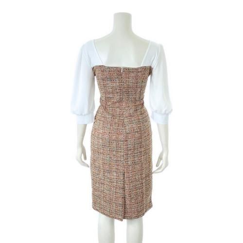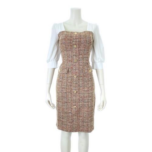 タグ:#ミディアムドレス #タイト #ツイード #七分袖 #レッド系