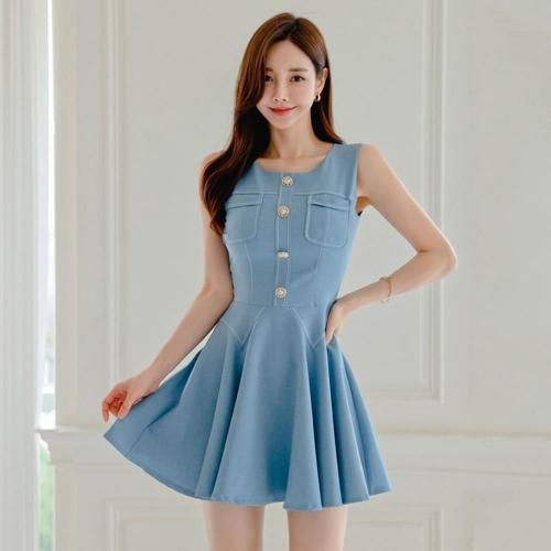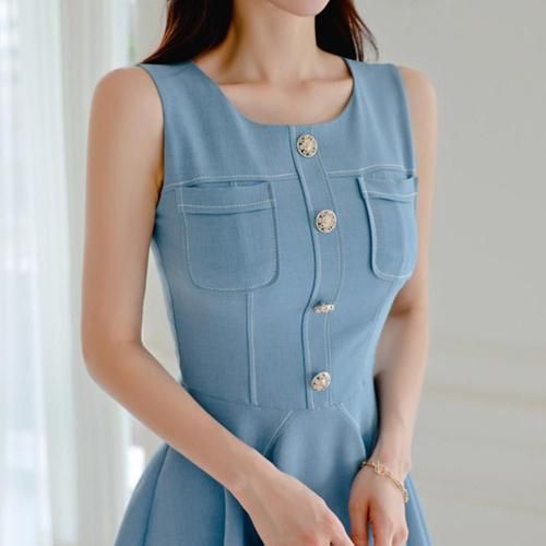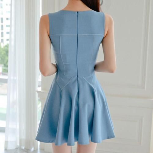 タグ:#ミニドレス #ノースリーブ #ハイウエスト #フレア/Aライン #ブルー系