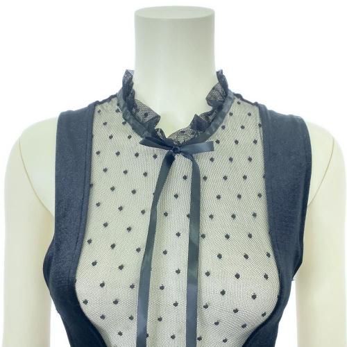 気品とエロティックがミステリアスに絡み合うベビードール(BABYDOLL)。フリルスタンドカラーにリボン、ベロアにパールビーズなどゴシック調のデザインがミステリアスで気品が漂うデザイン。サイドウエストをカットすることでボディラインを美しく魅せ、フロントやバックスタイルに施したドット柄のチュールからは肌の透け感が楽しめます。ベロアとチュール切り替えの裾はヒップが見えるほどミニ丈で、露出度の高いバックシャンからも妖艶ムードが漂います。