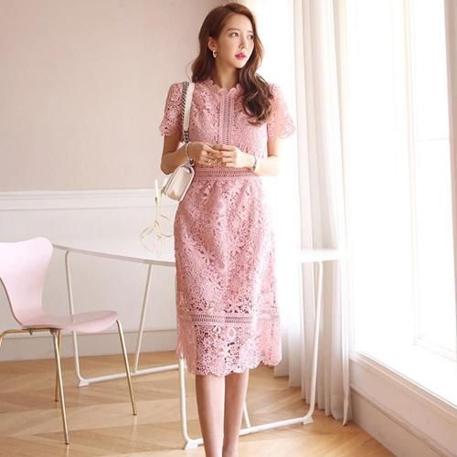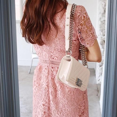 タグ:#ミディアムドレス #フレア/Aライン #半袖 #ピンク系