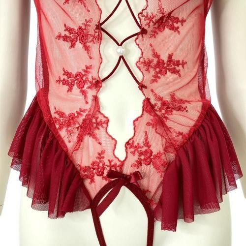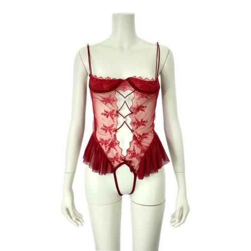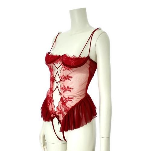エロカワのギャップに心躍るオープンクロッチテディ(TEDDY)。パールとリボン、裾のフリルがフェミニンなテディはワイヤー入りカップが下からバストを持ちあげつつ、内蔵パットがバストをより丸く美しくさらにボリューミーに大胆露出。クロッチはフロントから腰まで伸びた2本のストリングが素肌を思い切りさらけ出し、腰にあしらった可愛らしいリボンとのギャップがバックスタイルをよりエロティックに魅せます。
