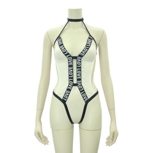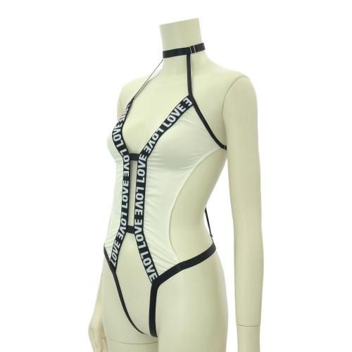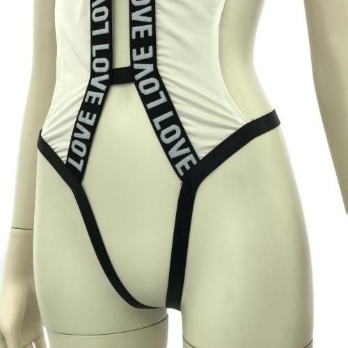 身体中に「愛」を纏ったスケスケレオタード(LEOTARD)。LOVEのロゴバンドで縁取りされたレオタードは素肌が透けるほど薄く隠し切れない凹凸が露わに。ウエストのサイドカットはバストからウエストやヒップにかけて美しい曲線を描き、ゴムストリングのオープンクロッチが隙だらけでとてもセンシュアル。さらに、バックスタイルは露出度高めのストリングが拘束感のあるデザインで、後ろからの眺めも最高に妖艶です♪パートナーからの「愛」を身体中に感じることで、さらに最高の時間を過ごせそう。