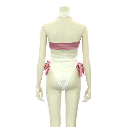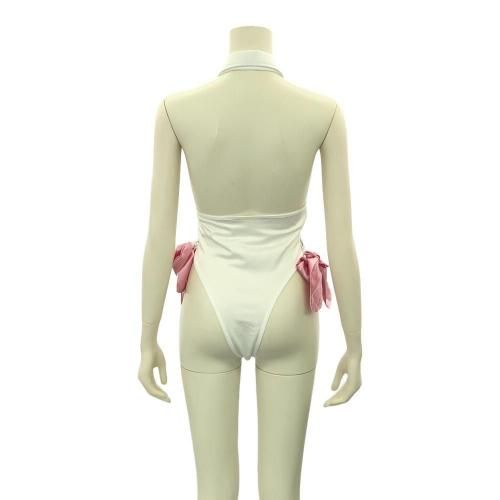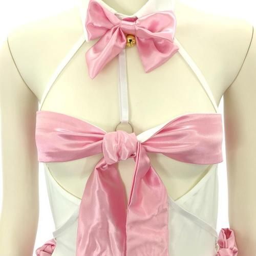 リボンをどう使うか想像だけでワクワクする猫耳テディ(TEDDY)。白にサテンピンクのリボンがガーリーなのに、とっても際どい超ハイレグスタイルテディ。首元には鈴付きのリボンが揺れるたびに鳴り響き、バストは大胆なオープンバスト。セットのリバーシブルリボンを使ってバストをブランディングしたり、手首を拘束するなどリボンの使い方はさまざま。伸縮性があり動きやすくサイドにも可愛いリボンをあしらったハイレグのクロッチは、2列3段のホックになっているので着脱も簡単です。フワフワ猫耳のカチューシャを身に着けることで抱きしめたくなるキティガールに変身♪