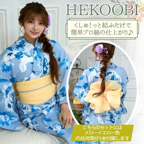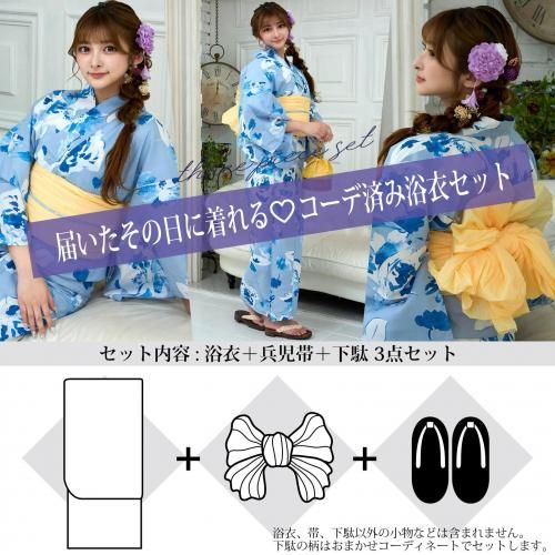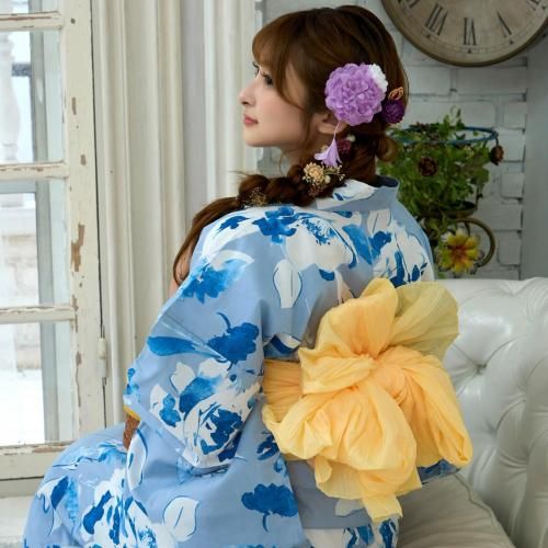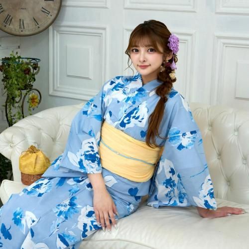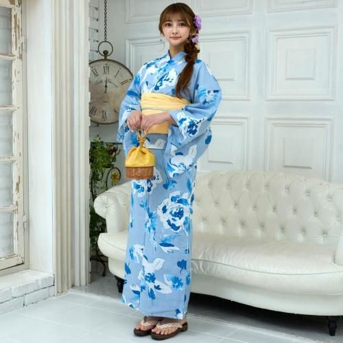 セット内容浴衣、兵児帯(メローイエロー色×1)、下駄 3点