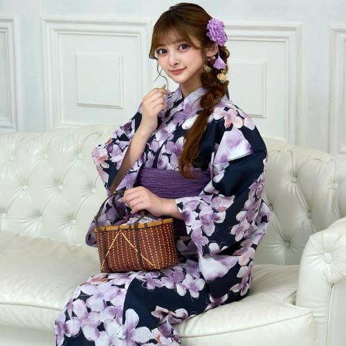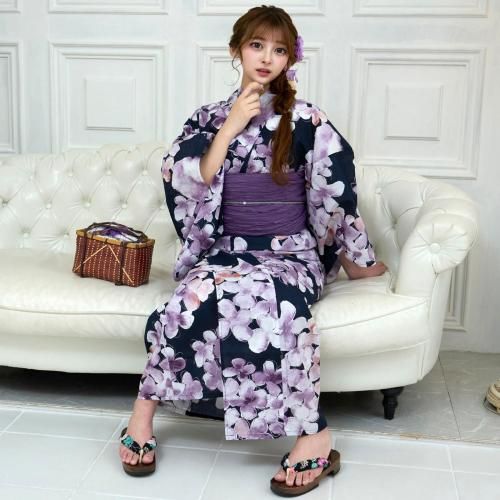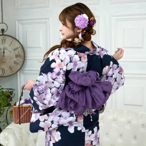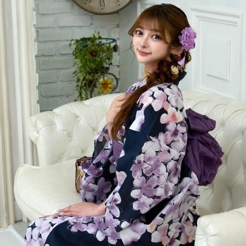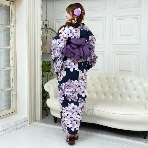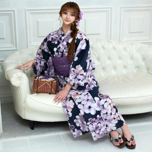 濃紺に映える紫陽花柄の浴衣3点セット(YUKATA)。